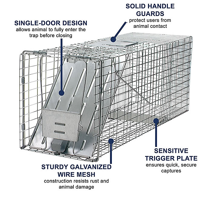 Product Description Havahart® Easy Set® Animal Trap Sets and releases perfectly with one hand High tensile, galvanized, rust proof steel Enlarged hand guard protects consumer…