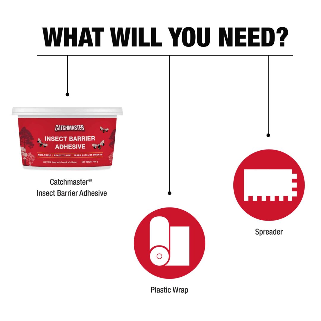 • When combined with a standard plastic wrap it creates a tree band which is a physical barrier on your tree