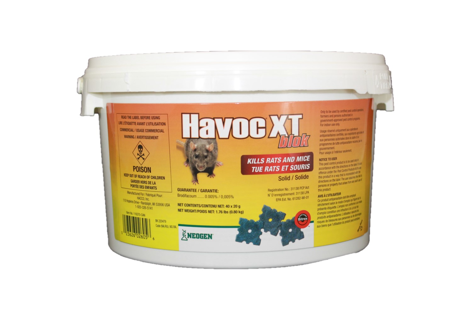 Havoc-XT® products combine Brodifacoum with a special mixture of highly attractive bait ingredients along with patented food processing techniques.