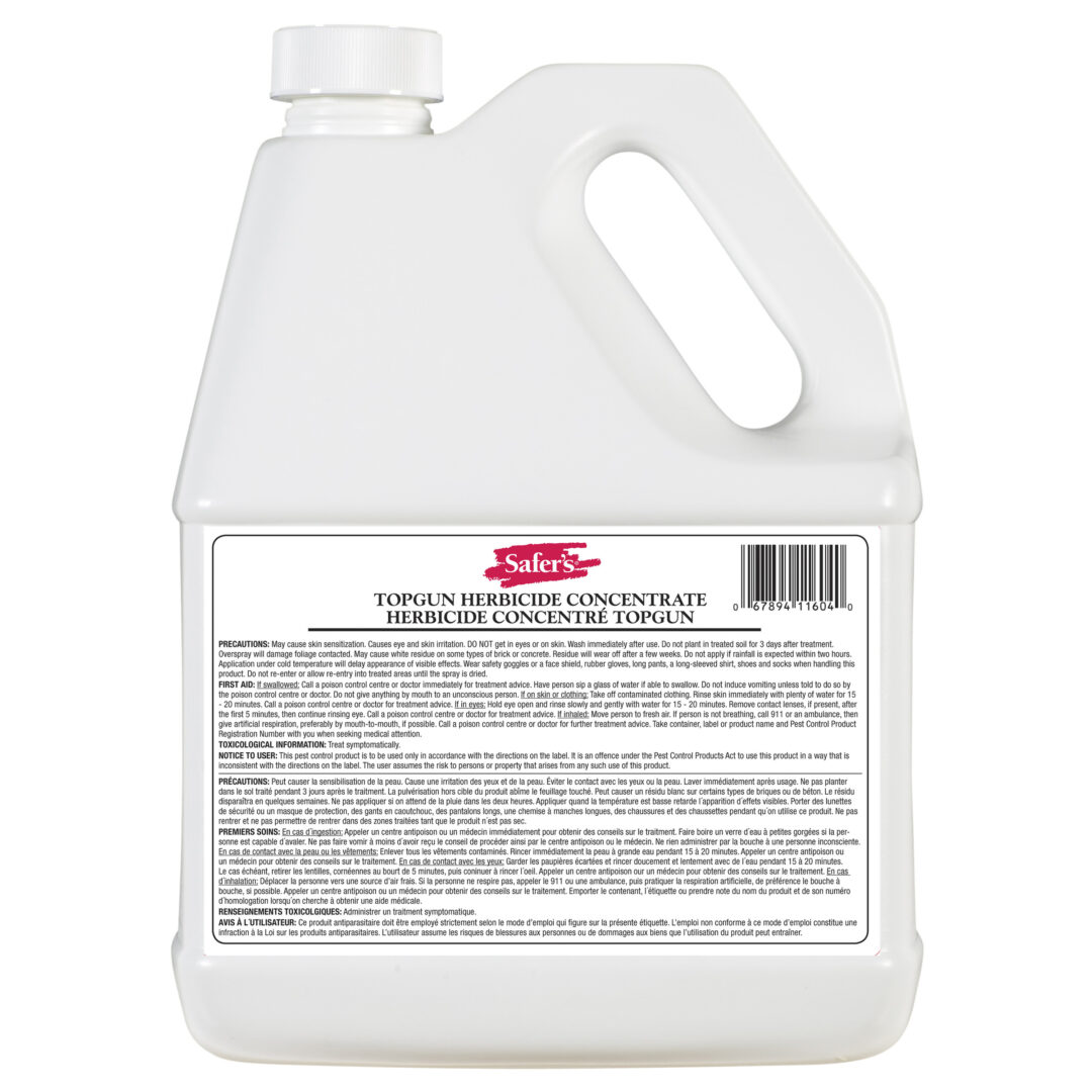 Safer’s TopGun Weed Killer controls weeds in and around the garden. This fast acting herbicide can be used around building, fences, gravel, trees, sidewalks and driveways. It can also be used prior to planting grass, shrubs, flowers, and vegetables and will leave no soil residue. Controls a broad spectrum of weeds including redroot pigweed, corn spurry, chickweed, and more. Specifications: • Active Ingredient: Fatty Acids 18% • Fast Acting Herbicide • Controls a broad spectrum of weeds • Can be used on and around a variety of structural surfaces and gardens