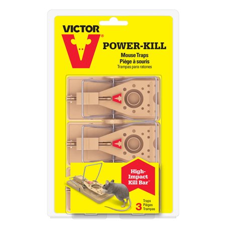 The Victor Power-Kill Mouse Trap is set and released with 1 simple click. The trap is designed with a large trough for easy baiting and the large trip pedal is easily activated both by rodent interest in food and through accidental contact as mice scamper across the floor. Once a rodent triggers the pedal, the high-impact kill bar immediately springs closed for a quick, humane kill.