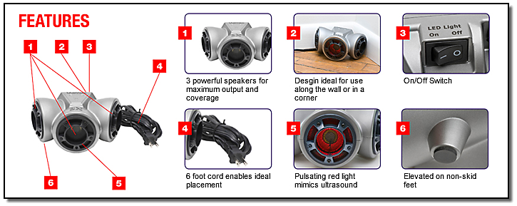 In the continuing quest to help you rid your space of rodents, Victor is featuring the Ultra with three speakers for maximum coverage and protection. By sending out high-frequency ultrasound that rodents find very distressing, the Pest Chaser “encourages” them to flee the scene. The Ultra Pest Chaser provides a long-lasting and economical pest control solution.