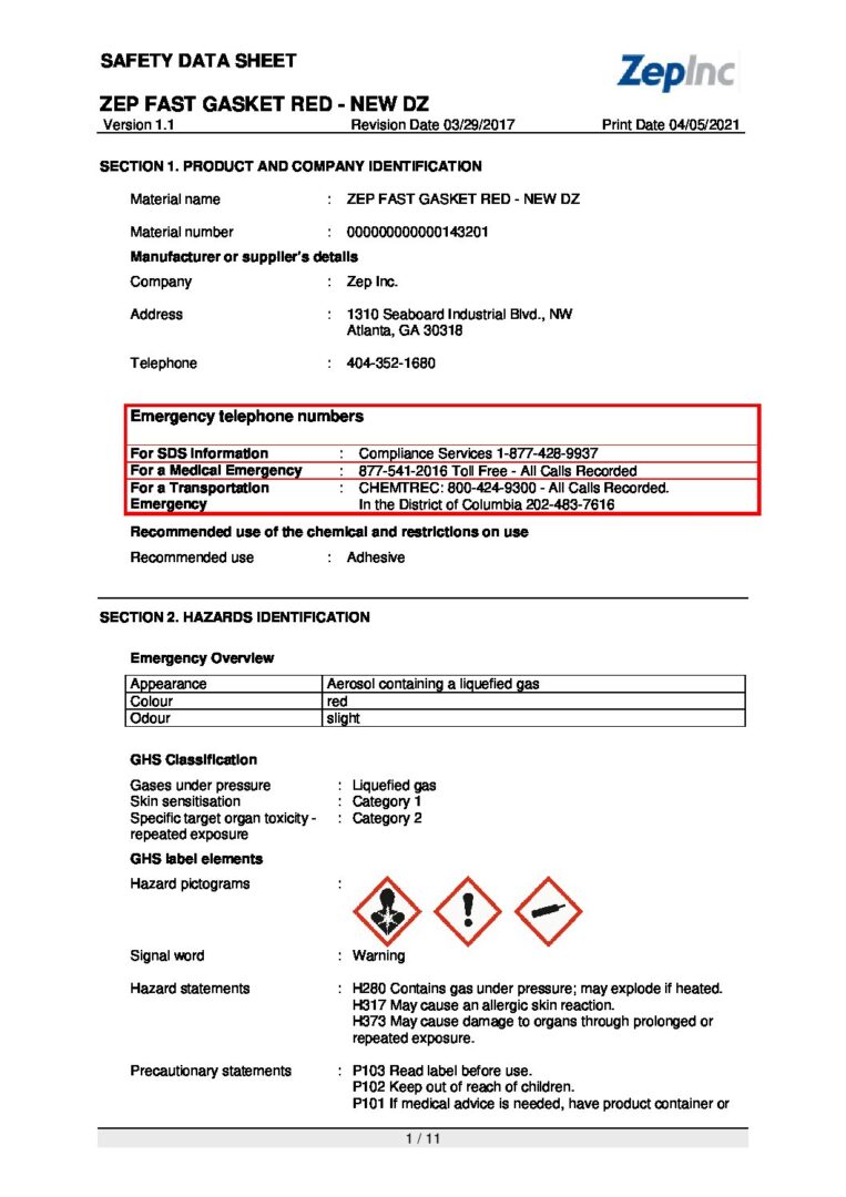 Zep Fast Gasket Red is a red silicone rubber bonding and sealing compound. Its 100 percent silicone formula provides permanent flexibility and adhesion. It is perfect for sealing cracks and joints in the roofs and sides of school buses, construction equipment and farm equipment. It creates formed-in-place gaskets for gearboxes, compressors and pumps. No caulking gun or squeeze tube needed, and the compound produces a fine bead at the touch of a finger for neater jobs and less waste. Fast Gasket Red comes in a convenient pressurized package and is effective at temperatures ranging from -60°F to 450°F.