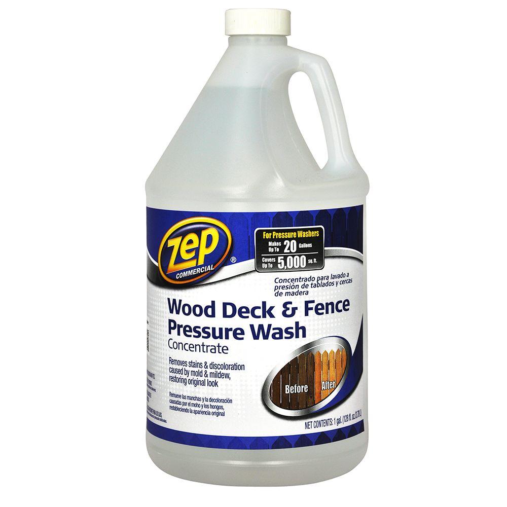 - Zep Wood Deck & Fence Pressure Wash Concentrate revives wood and composite structures and removes stains from mold stains, mildew stains, and stains from pollen and other soils